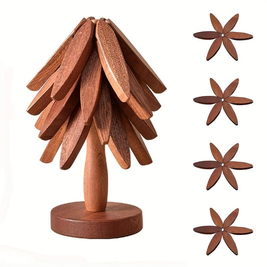 Tree-Shaped Wooden Trivet Set with Stand